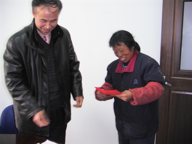 [本网讯]2009年1月19日,上级工会主席一行来到我公司,对我公司的困难职工进行了亲切慰问。乐投·体育公司工会在上级工会的指导下,深入调查,摸清特困职工的基本情况,积极配合上级工会把组织的温暖送到职工手中、心底。图为上级工会慰问困难职工,把慰问金送到困难职工手中。