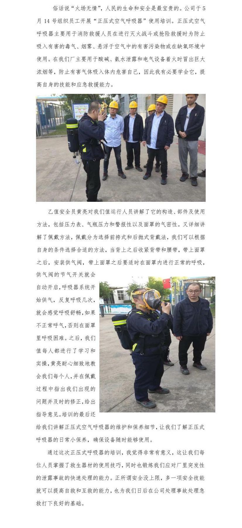[安环快讯] 加强实操演练 提升应急能力-正压式空气呼吸器培训有感